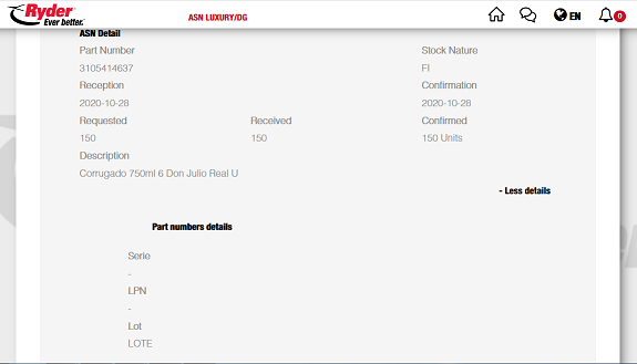 In case no configuration exists, by default all data will be visible in the application. The displayed fields will be different, depending if its an ASN or an Order.
