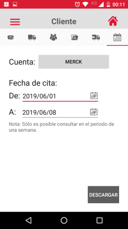El usuario podrá realizar una "Búsqueda por Fecha de cita", para ello deberá seleccióna el nombre de la "Cuenta" de su interés y elegir dos fechas que deberán abarcar un periodo igual o menor a una semana.