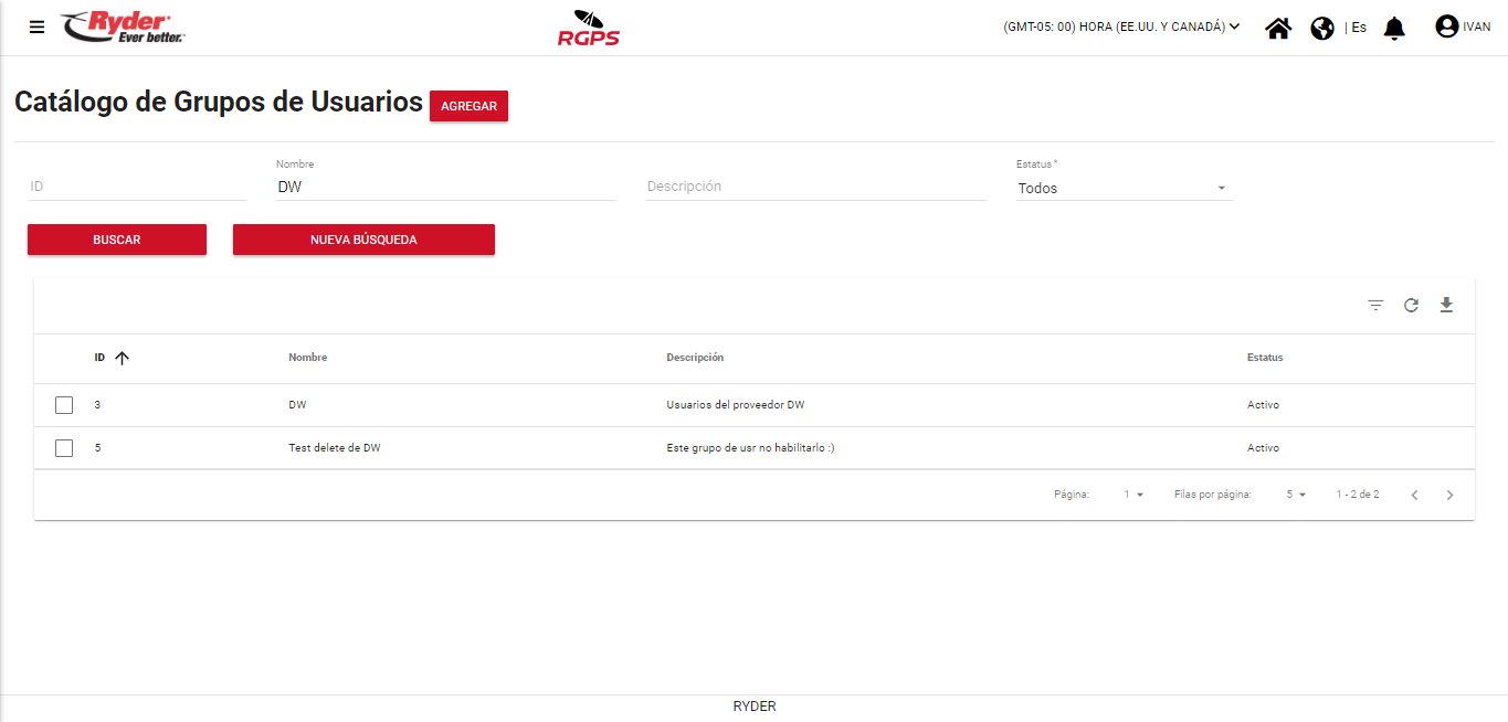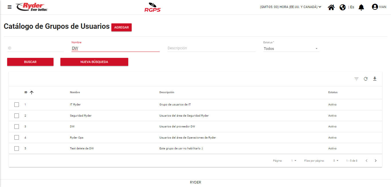 Al encontrarse sobre la pantalla “Catálogo de Grupos de Usuarios” el usuario podrá aplicar la siguiente serie de filtros: