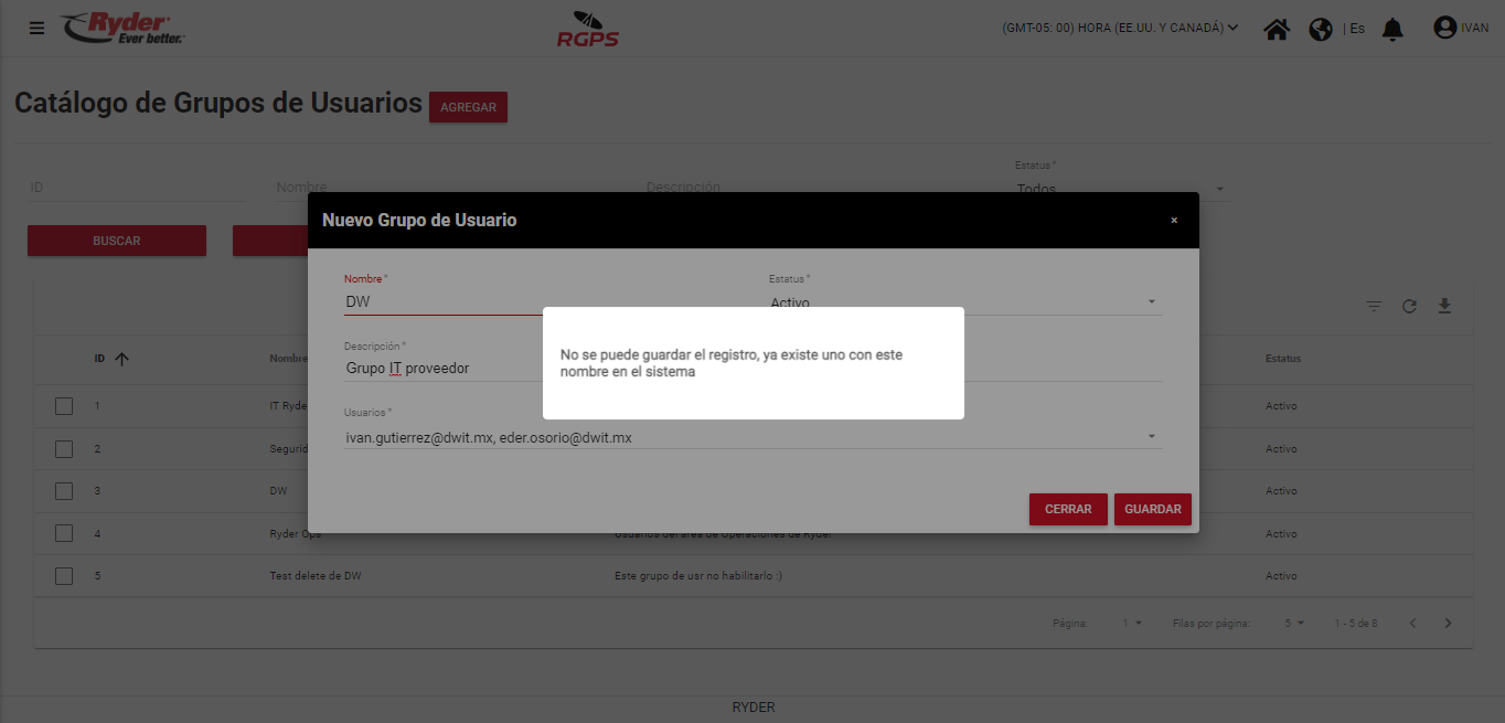 - No se encuentre un grupo de usuarios ya registrado con el mismo nombre capturado que se está intentando guardar.