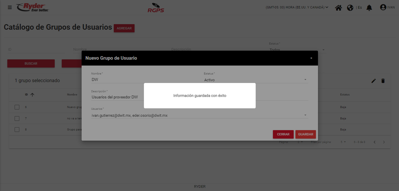 El mensaje desaparecerá de manera automática tras haber transcurrido un par de segundos y el usuario permanecerá en la pantalla “Catálogo de Grupos de Usuarios”, en donde se podrá visualizar el nuevo registro dado de alta en el sistema.