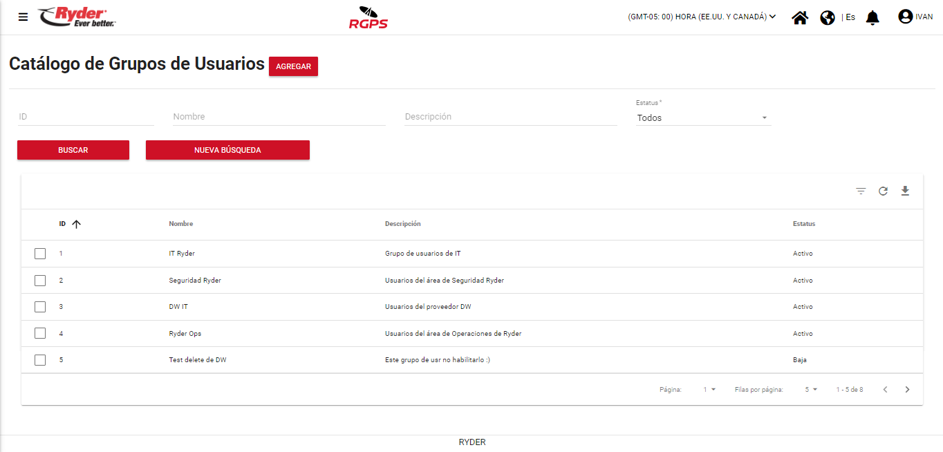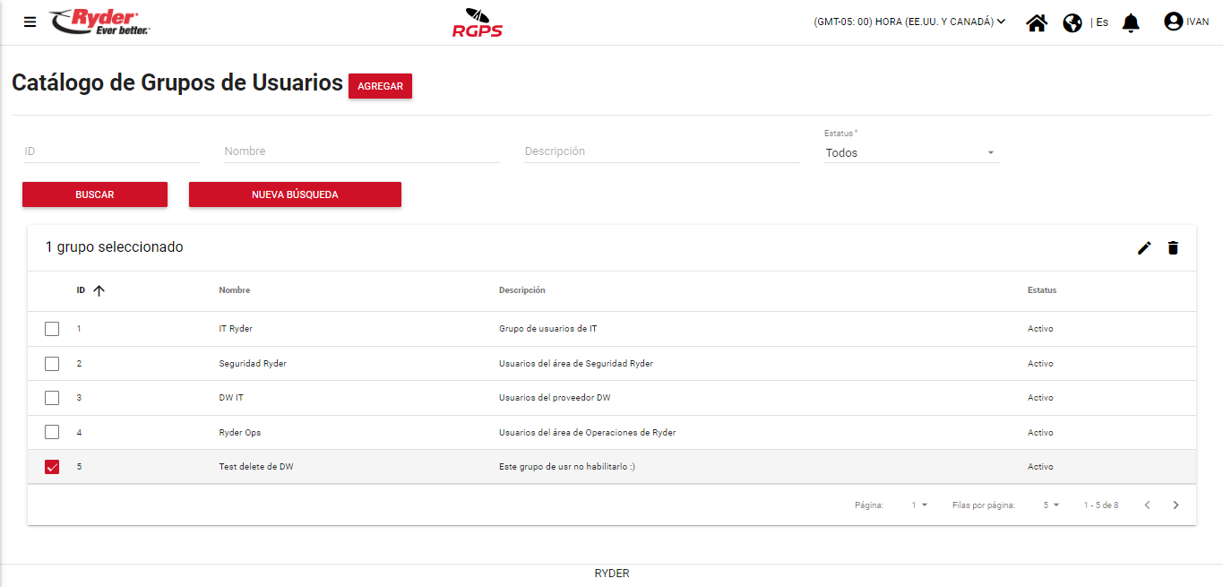 Al encontrarse en la pantalla “Catálogo de Grupos de Usuarios” y haber aplicado una búsqueda, el usuario deberá habilitar la casilla del registro de su interés y se mostrarán del lado derecho de la tabla los iconos: Editar y Eliminar.