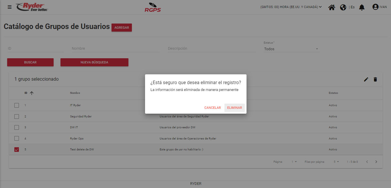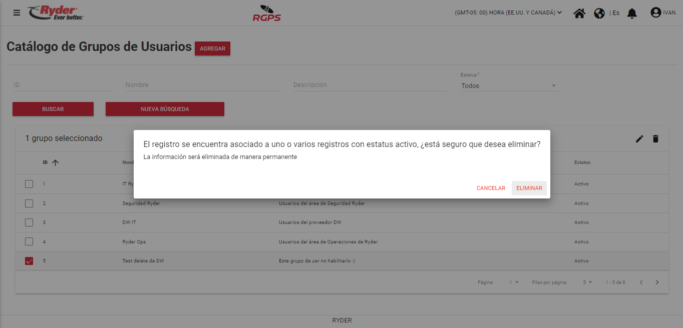 NOTA: Los usuarios que se habían asociado al grupo de usuario eliminado ya no se encontrarán seleccionados en los catálogos correspondientes donde se tenga el campo “Grupos de usuarios”.