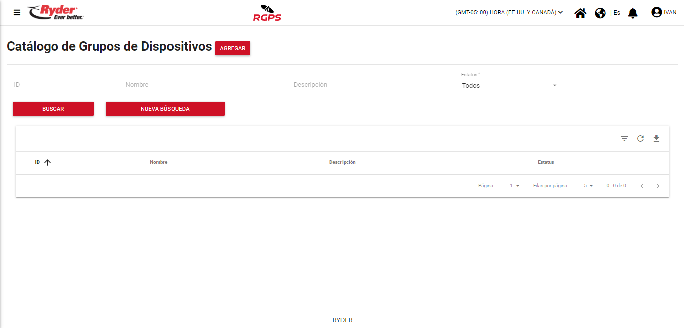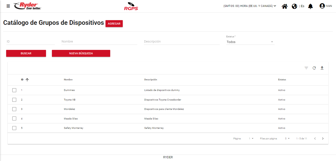- Estatus. Corresponderá al estatus con el cual se encuentra el grupo de dispositivo en el sistema.