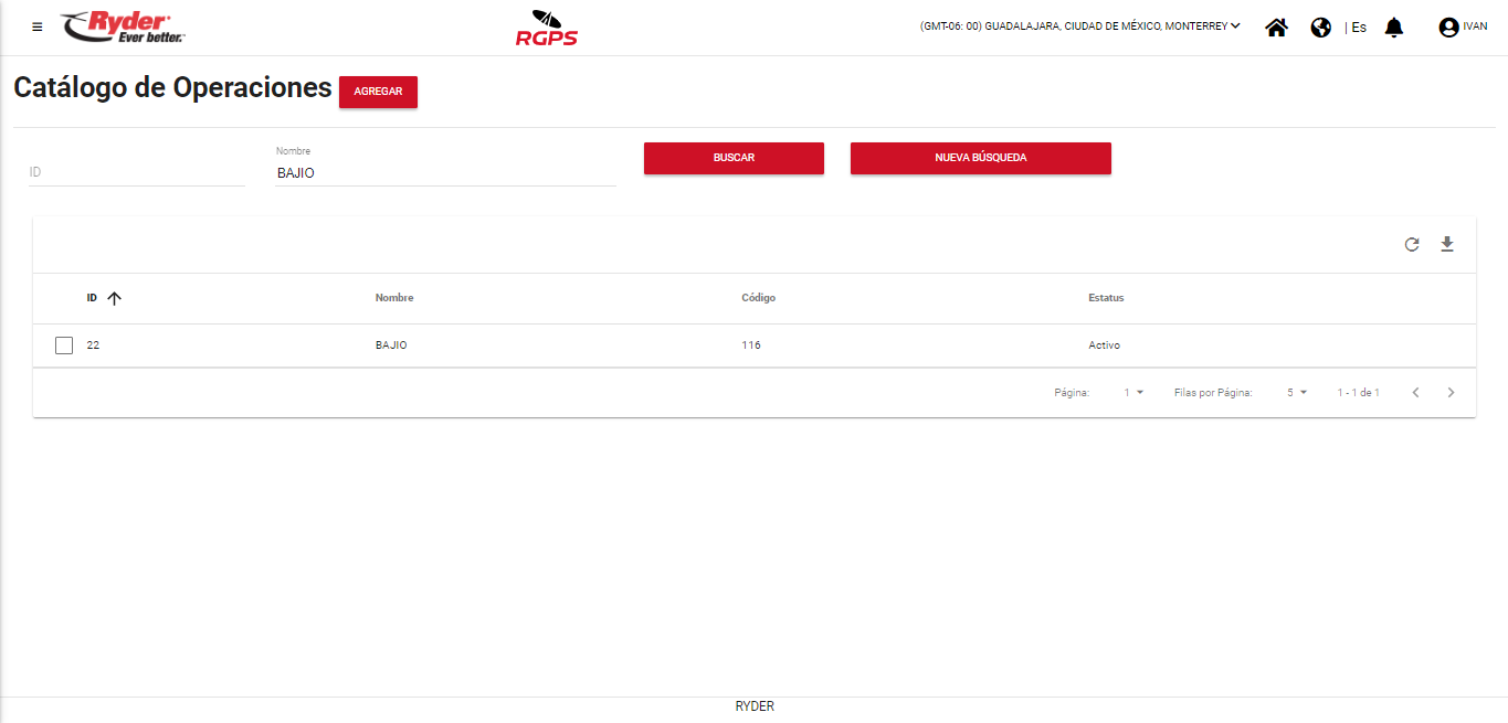 Al finalizar la captura/selección del filtro de interés, el usuario deberá dar clic en el botón [Buscar] y se mostrará el listado de todas aquellas operaciones registradas que coincidan de manera total o parcial con el filtro aplicado.