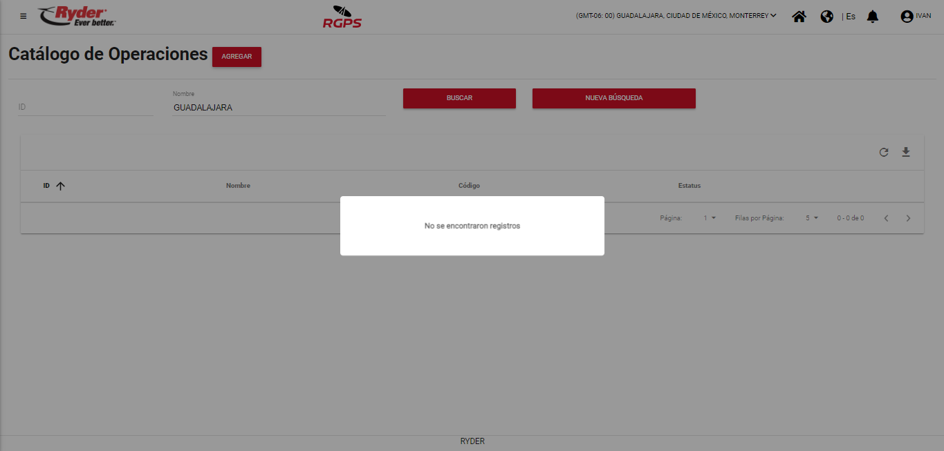 En caso de realizar la búsqueda de una operación que no se encuentre registrada en el sistema, al dar clic en el botón [Buscar] se mostrará el siguiente mensaje: “No se encontraron registros”. El mensaje desaparecerá de manera automática tras un par de segundos y el usuario permanecerá en la pantalla correspondiente donde se mostrará lo que fue capturado/seleccionado en los filtros correspondientes. El usuario podrá dar clic en el botón [Nueva búsqueda] para limpiar la información capturada/seleccionada y poder aplicar una nueva.
