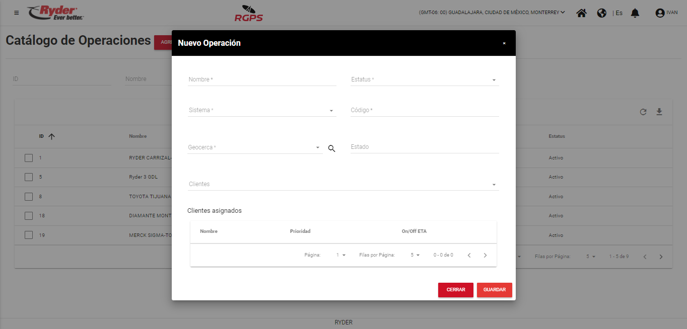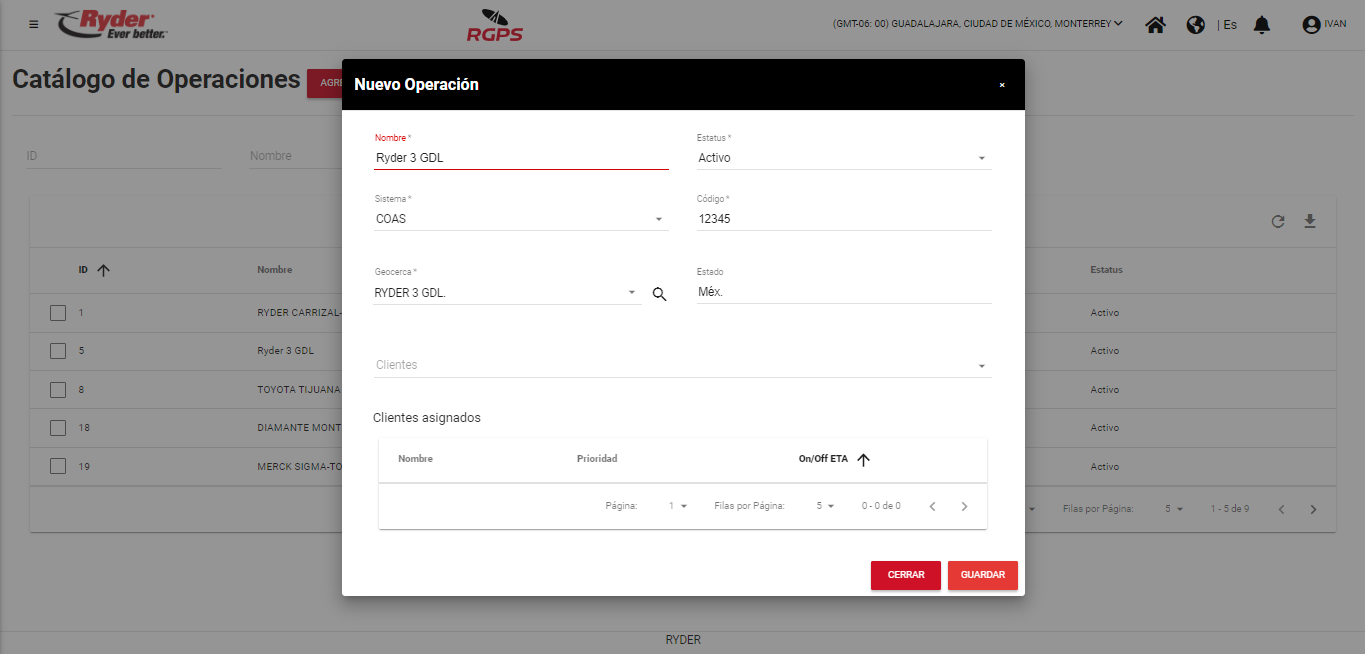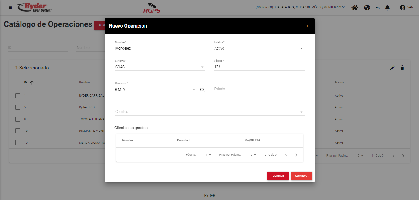 - Clientes asignados. Mostrará el listado de clientes seleccionados en el campo “Cliente”, en donde se mostrará Nombre, Prioridad y On/Off ETA.