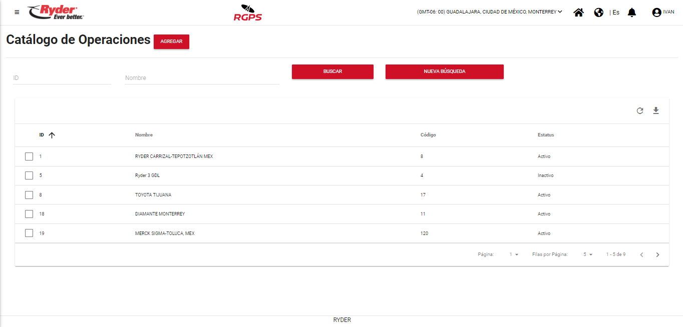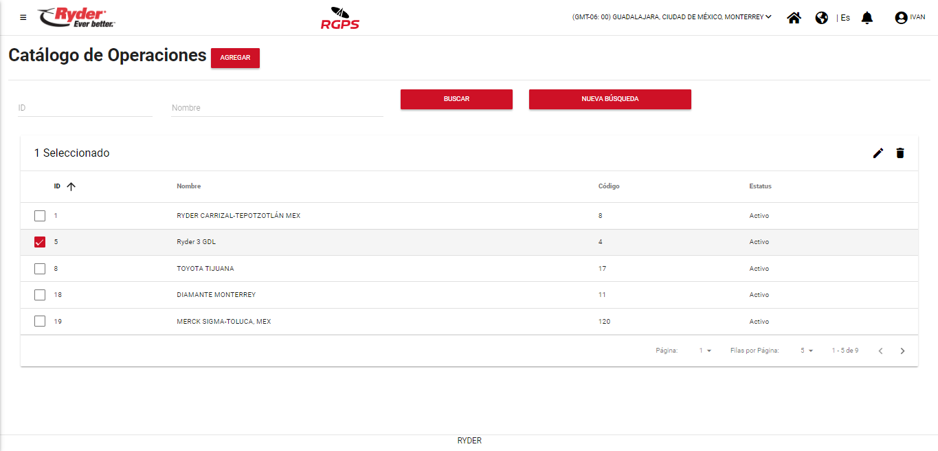 Al encontrarse en la pantalla “Catálogo de Operaciones” y haber aplicado una búsqueda, el usuario deberá habilitar la casilla del registro de su interés y se mostrarán del lado derecho de la tabla los iconos: Editar y Eliminar.