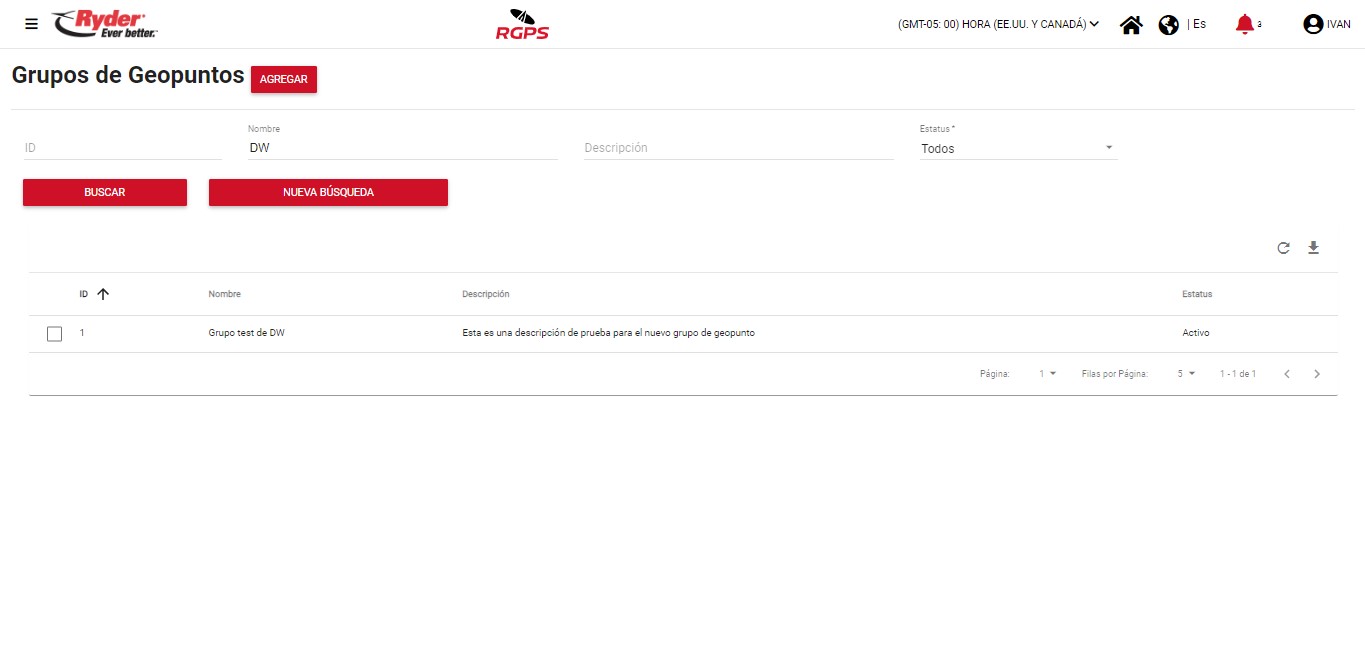 Al encontrarse sobre la pantalla “Grupos de Geopuntos” el usuario podrá aplicar la siguiente serie de filtros:
