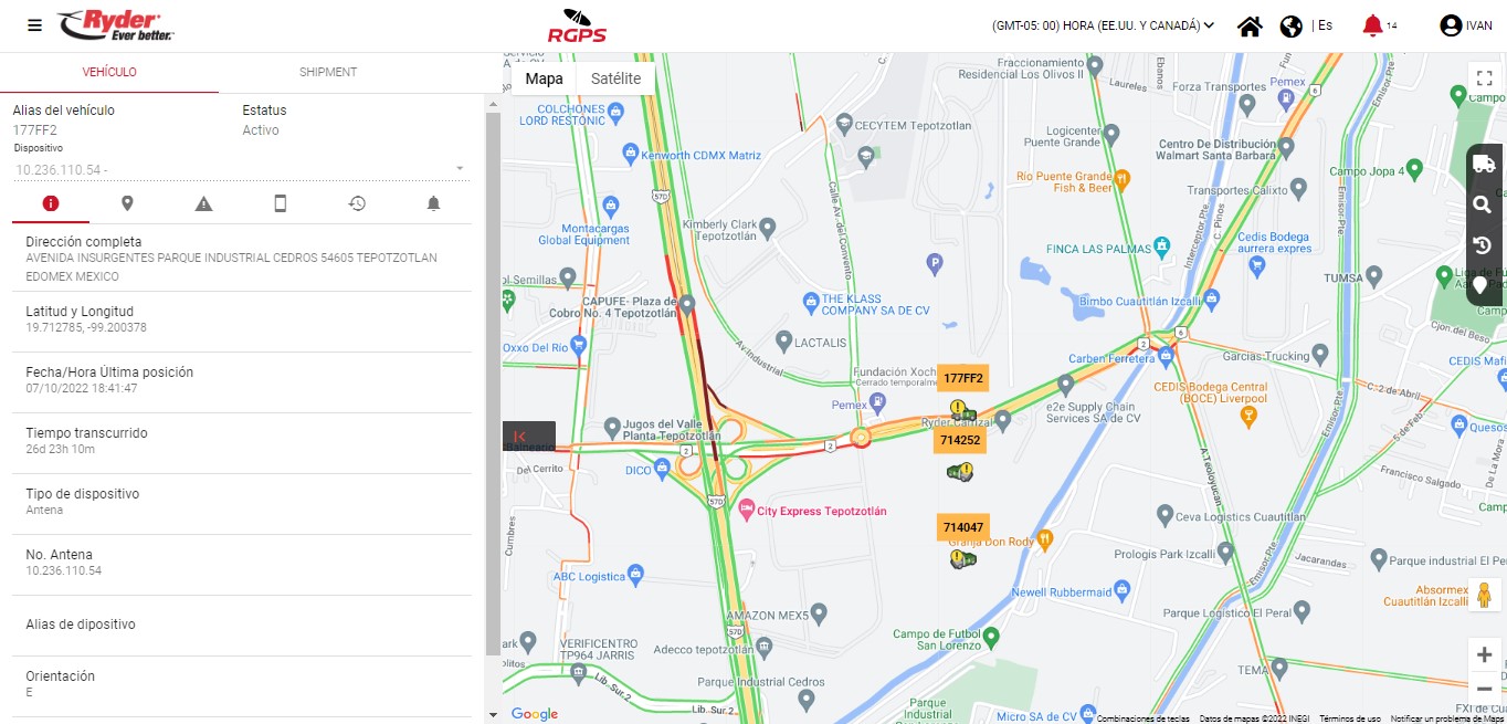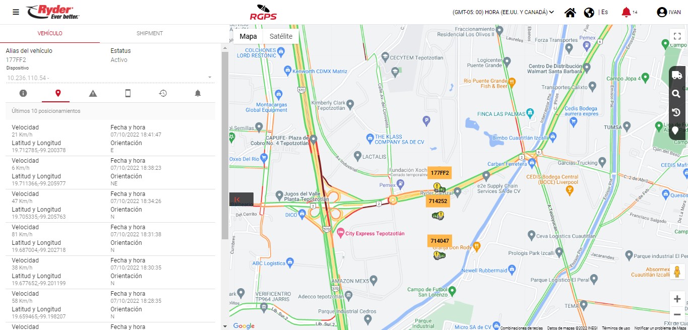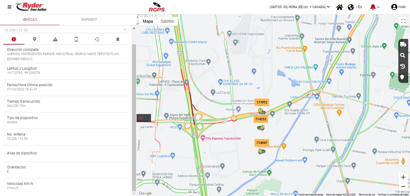 - Dirección completa. Indicará la dirección en donde se encuentra la unidad con forme a la última posición reportada por el dispositivo asignado.