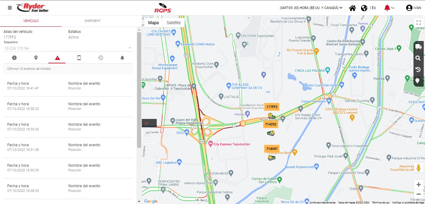 - Nombre del evento. Indicará el nombre del evento reportado a través del dispositivo asociado a la unidad.