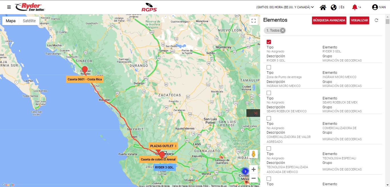 NOTA: Las georutas certificadas se mostrarán de color rojo y las no certificadas de color naranja.