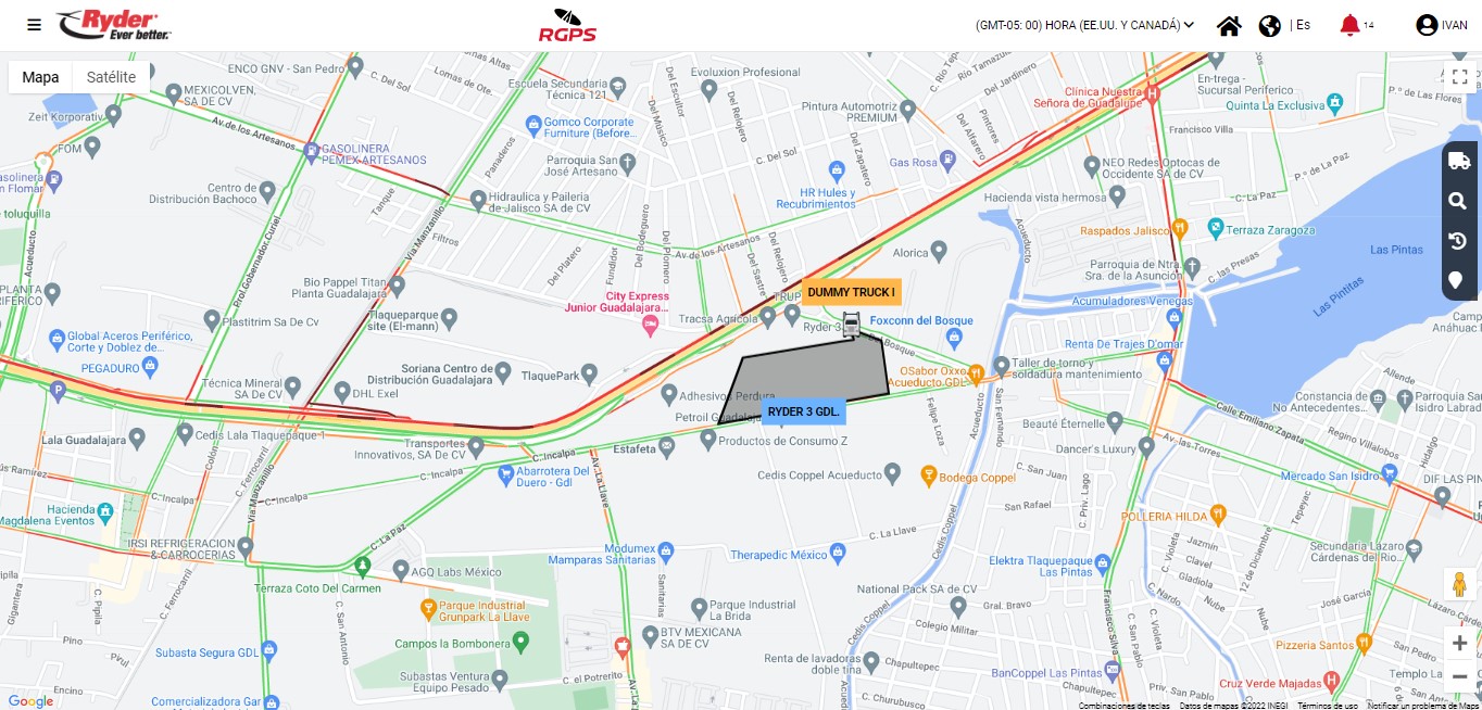 - Geocercas. Realizar zoom sobre la geocerca de interés para visualizar el trazo de la geocerca.