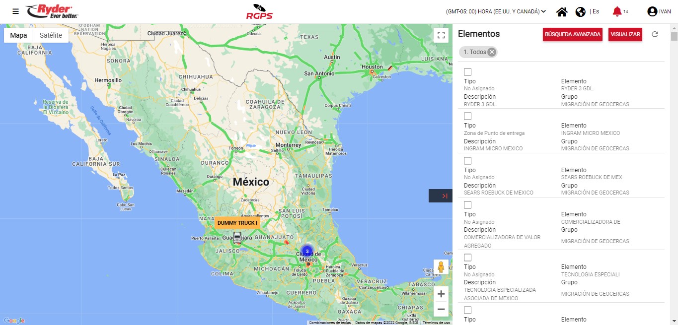 Tras haber iniciado sesión de manera exitosa y si el perfil del usuario autenticado cuenta con el permiso a "Monitor de unidades" se mostrará como pantalla principal del sistema “Monitor de unidades” en donde se visualizará un mapa con las unidades asignadas que son seleccionadas en "Unidades asignadas".