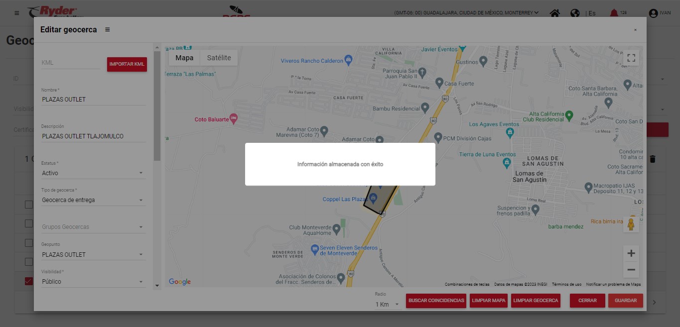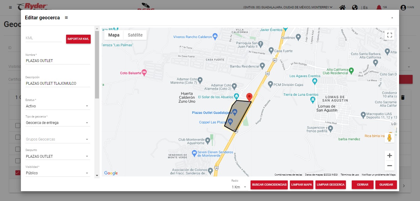 - El geopunto seleccionado (en caso de aplicar) se encuentre dentro del trazo dibujado de la geocerca.
