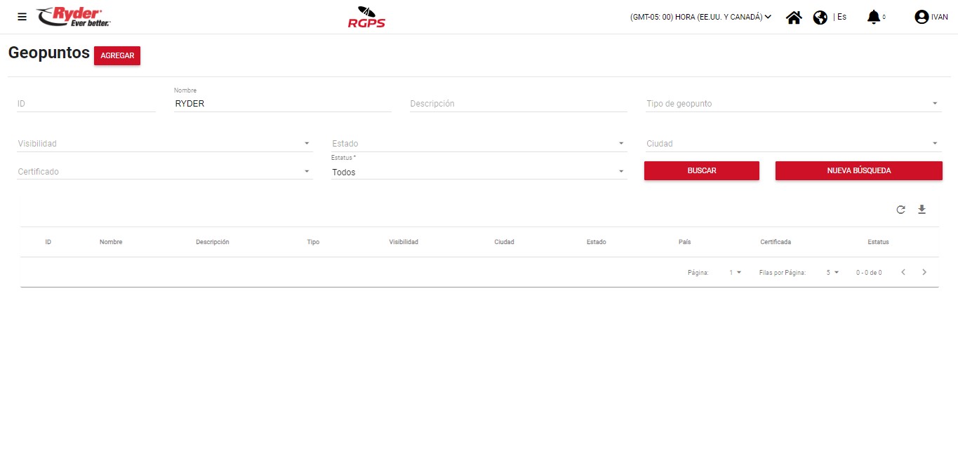 - Certificado. Permitirá realizar la selección de las opciones "Si" y "No" para mostrar los registros de geopuntos conforme a lo que se haya guardado el registro.