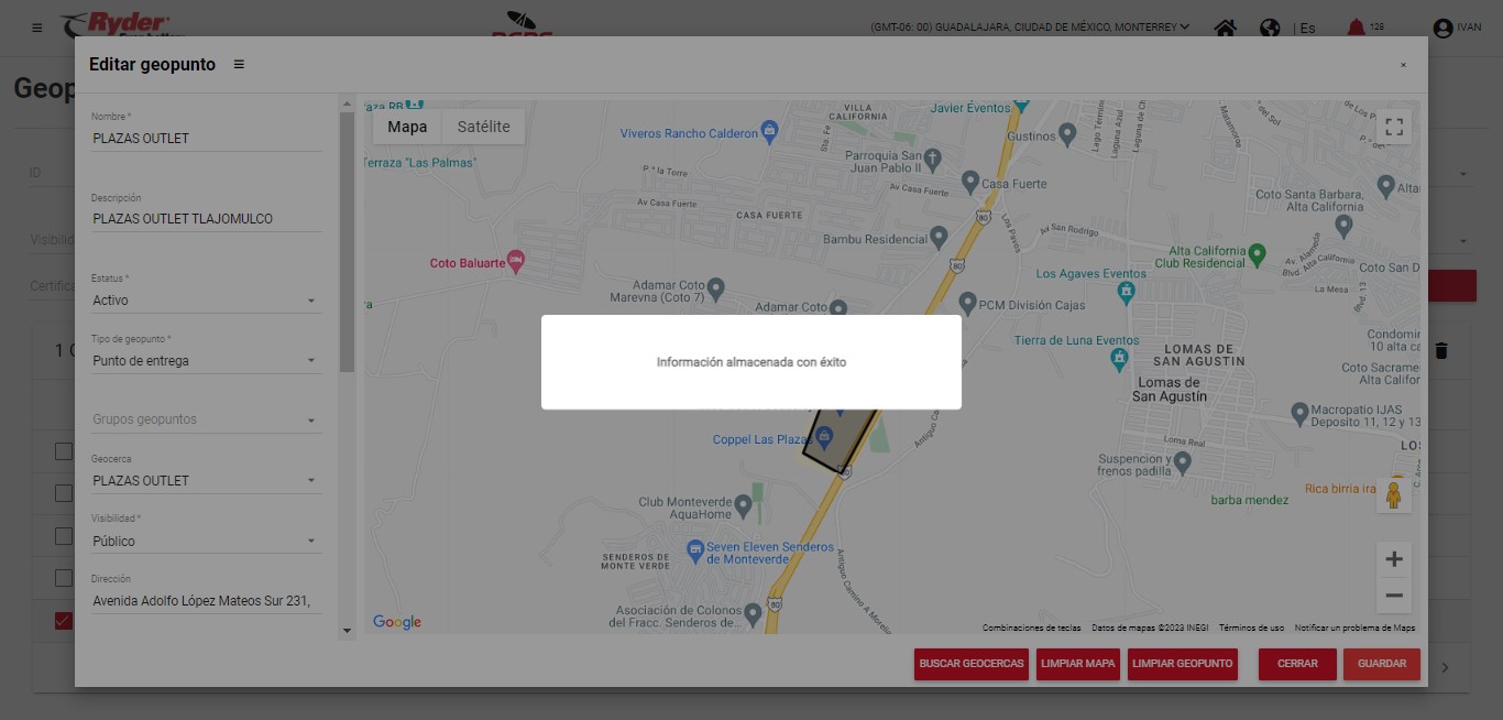 - El geopunto seleccionado (en caso de aplicar) se encuentre dentro del trazo de la geocerca seleccionada.