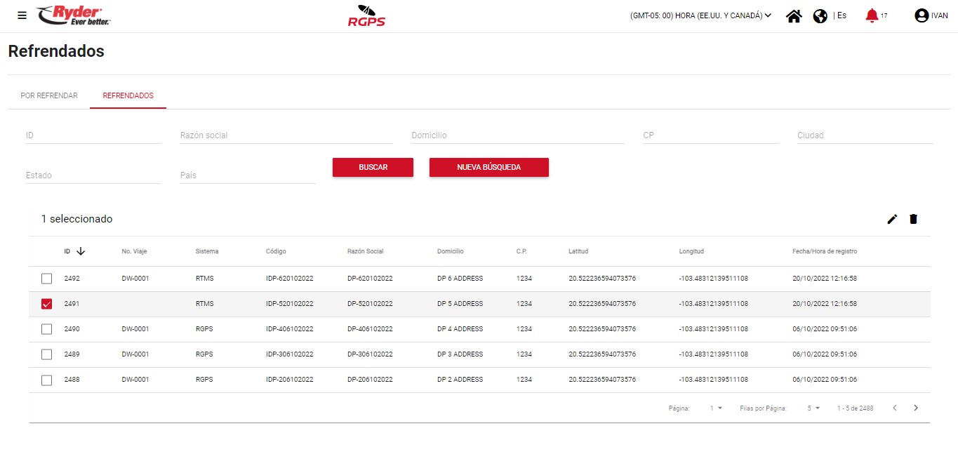 Al encontrarse en la pantalla “Refrendados” en la pestaña "Refrendados" y haber aplicado una búsqueda, el usuario deberá habilitar la casilla del registro de su interés y se mostrarán del lado derecho de la tabla los iconos: Editar y Eliminar.