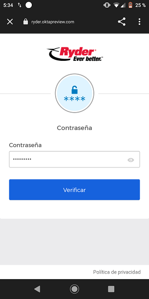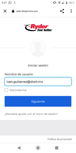Al intentar autenticarse por primera vez o tras haber realizado un cierre de sesión, al encontrarse en la pantalla de inicio de sesión se redireccionará de manera automática al usuario al navegador por default del dispositivo para realizar su autenticación por medio de OKTA.