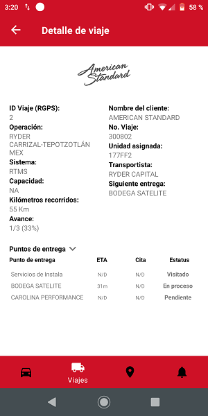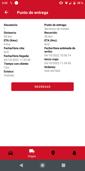 - Inicio viaje. Indicará la fecha y hora en que la unidad salió del punto de entrega una vez que este fue visitado.