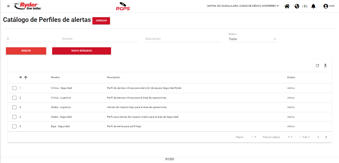 • Estatus. Corresponderá al estatus con el cual se encuentra el perfil de alerta en el sistema.