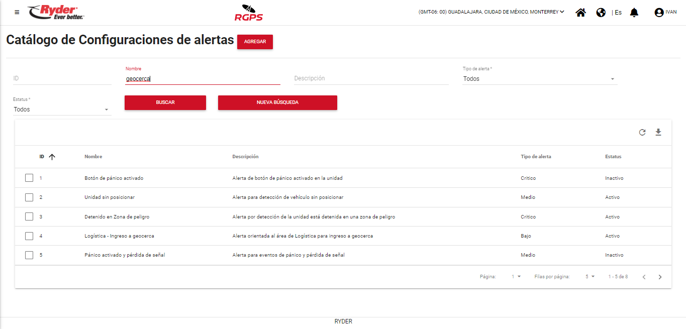 • Nombre. Permitirá realizar la captura para realizar la búsqueda mediante las coincidencias del nombre con el cual se guardó la configuración de alerta.