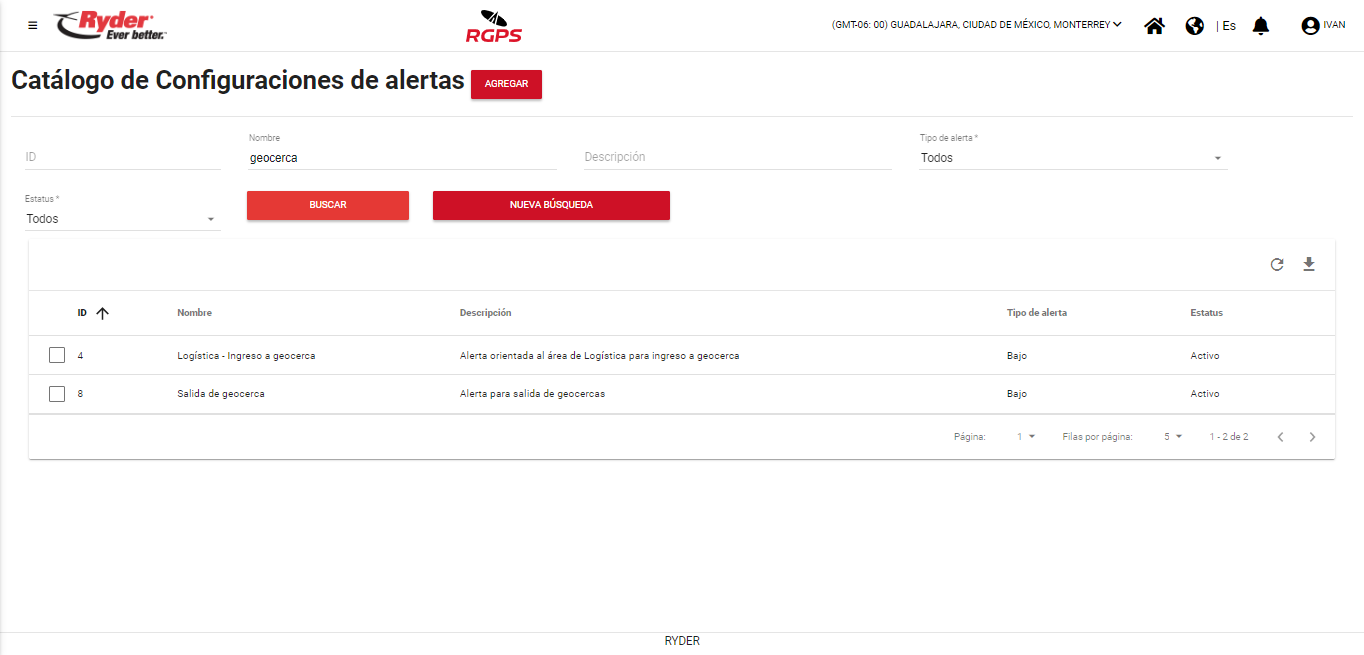 • ID. Permitirá realizar la captura para realizar la búsqueda mediante las coincidencias del ID asignado al registro con el que se guardó la configuración de alerta en la tabla de base de datos.