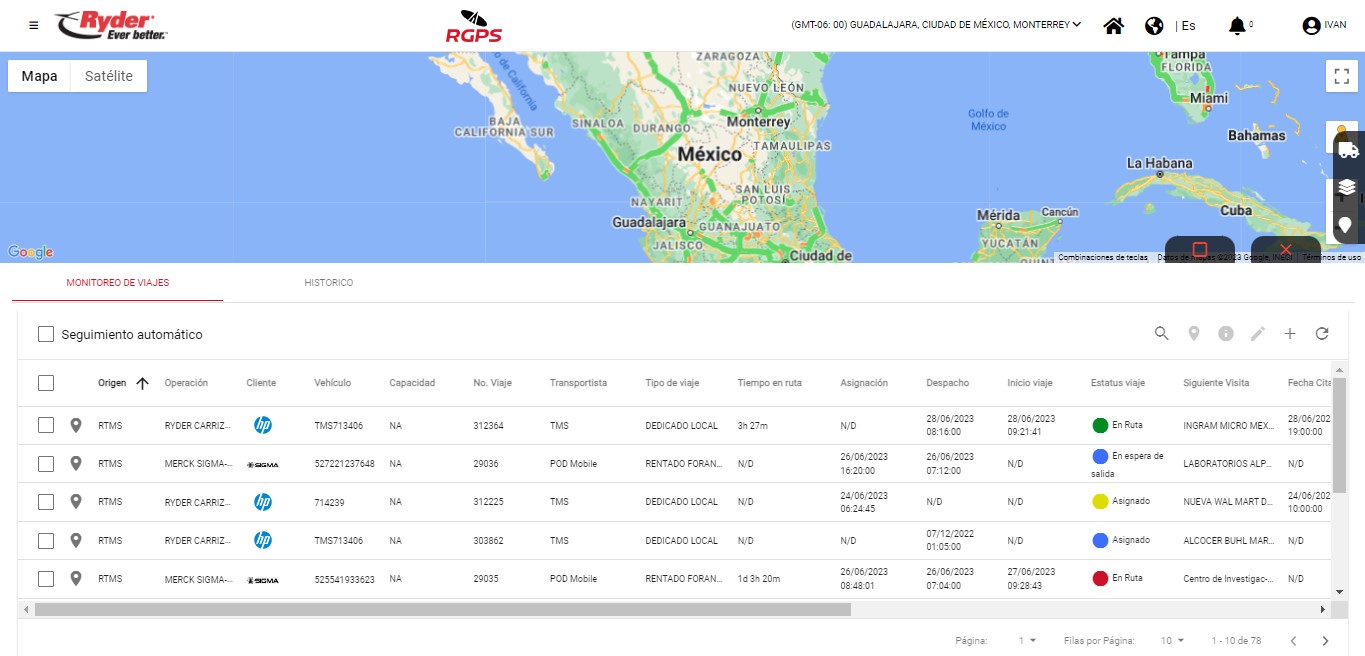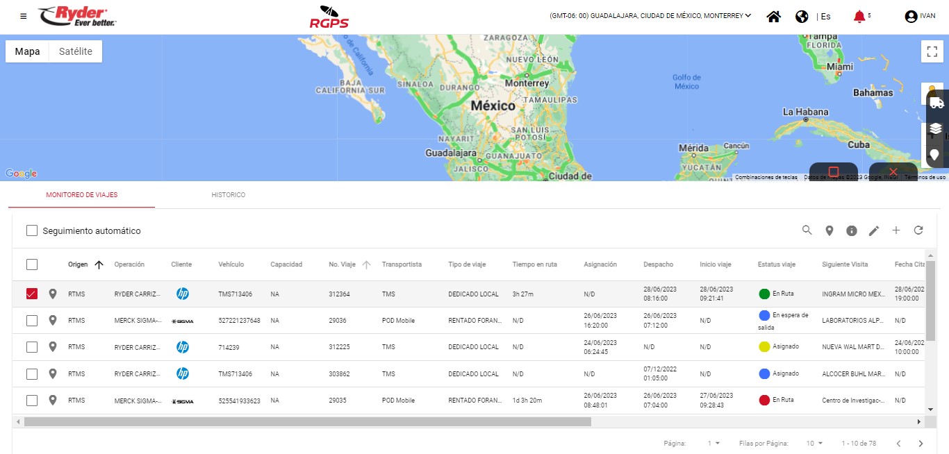 Se mostrará en mapa todos los puntos de entrega asociados a los viajes seleccionados hacia donde se dirige la unidad.