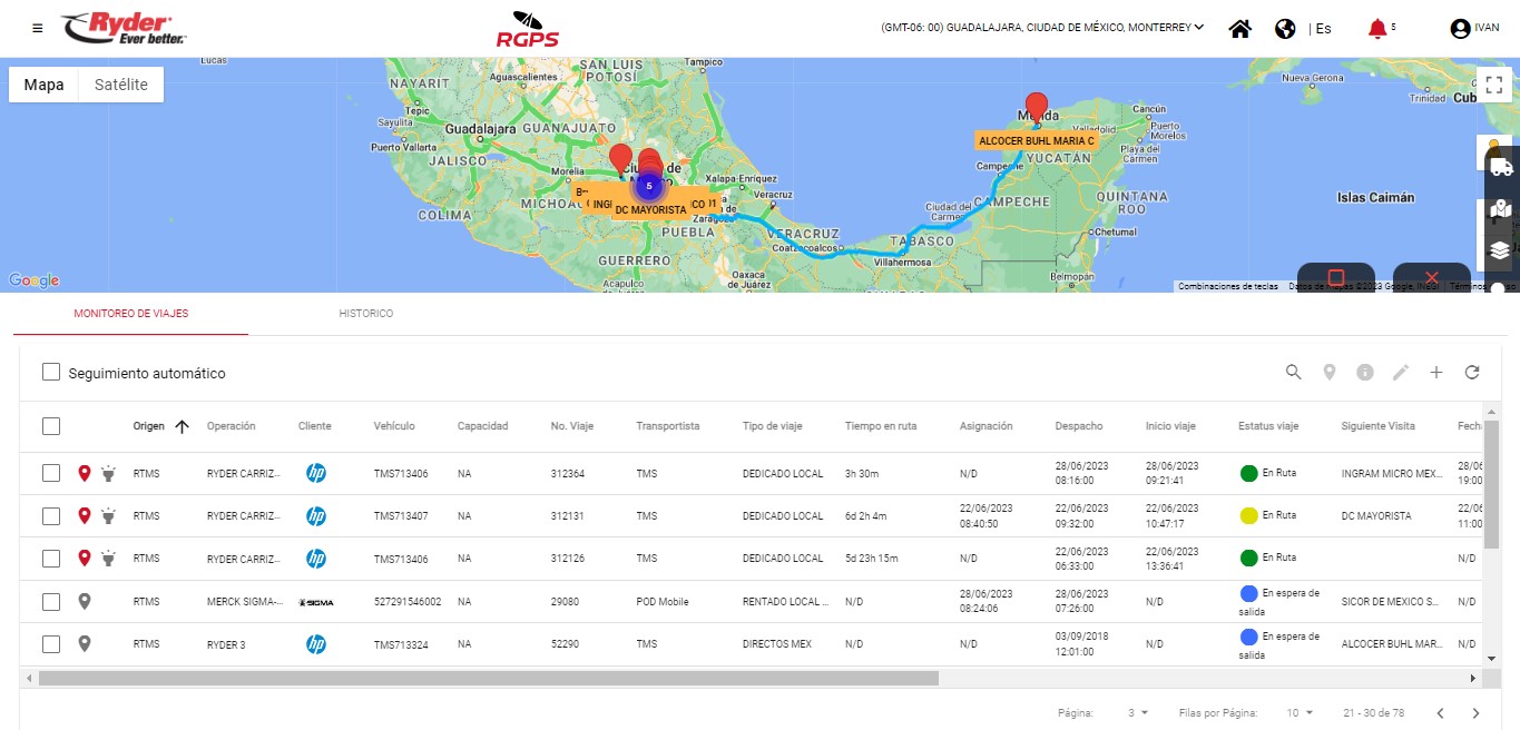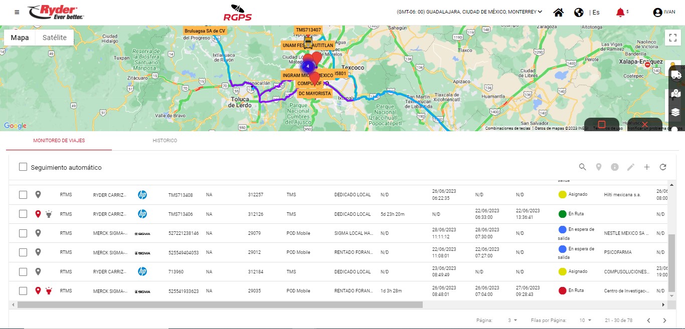- Si se tiene una georuta asignada que coincida con el origen - destino y no se encuentra certificada se mostrará de color naranja,