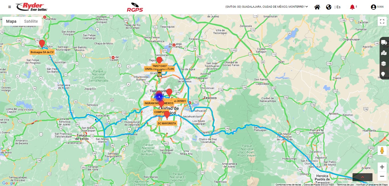 - Si no tiene una georuta asignada que coincida con el origen - destino y se asigna de manera automática una sugerida por Google Maps se mostrará de color azul.
