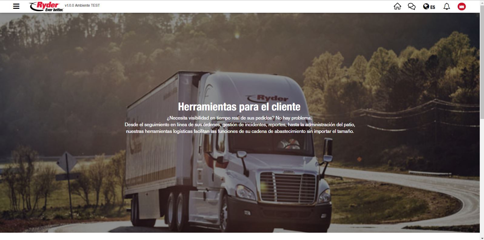 NOTA: Al final de la pantalla se muestran las opciones para descargar las aplicaciones móviles ya sea en App Store o Google Play, dependiendo del dispositivo utilizado y dentro de la franja roja se encuentra un botón que direcciona a la página web de Ryder de modo informativo para que el usuario pueda conocer las industrias y soluciones que se manejan.