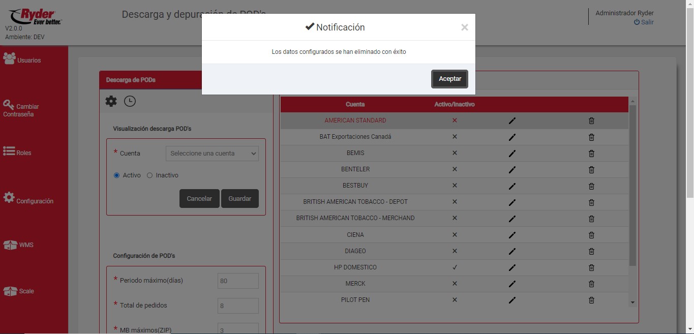 NOTA: Las cuentas eliminadas ya no tendrán acceso a la descarga de POD's en Track & Trace Web.