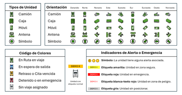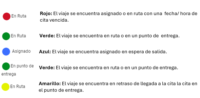 Verde: El tipo de unidad se encuentra en ruta o con un viaje asignado.