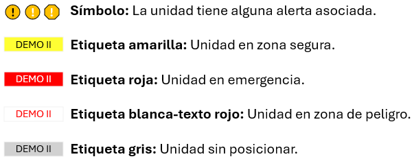 Etiqueta roja: El tipo de unidad se encuentra en una emergencia.