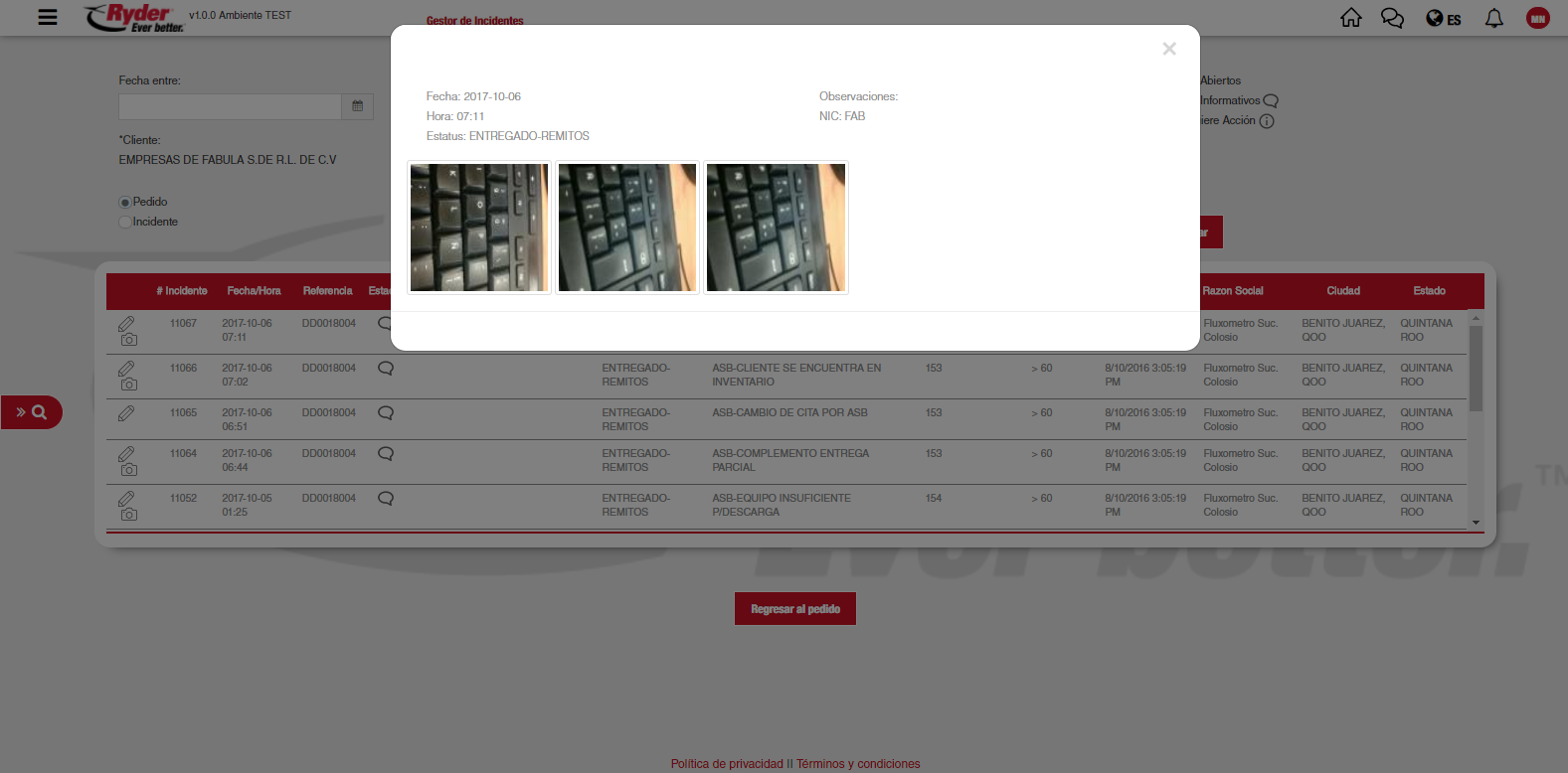 El usuario podrá ver las imágenes de un incidente si es que este las tiene presionando el icono de cámara, desplegando el visor de imágenes definido para Track & Trace Web.