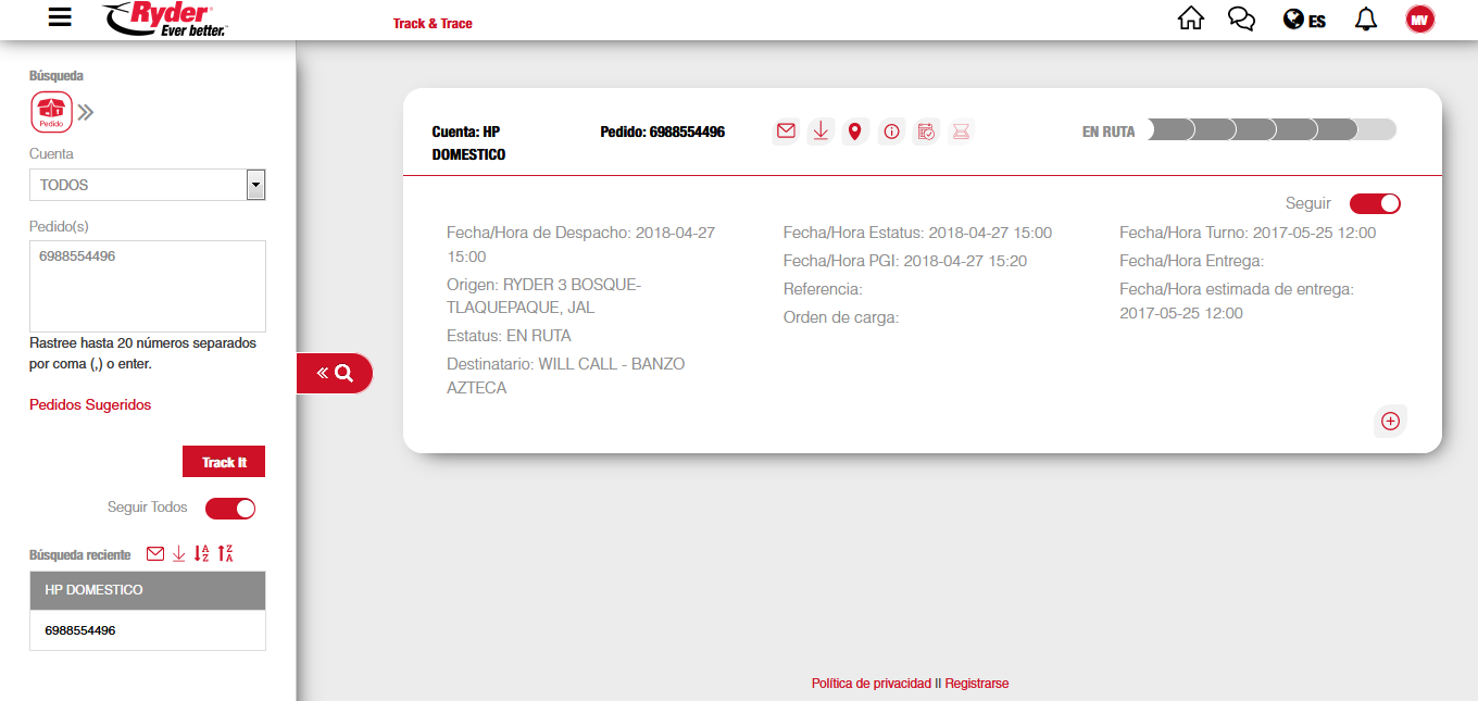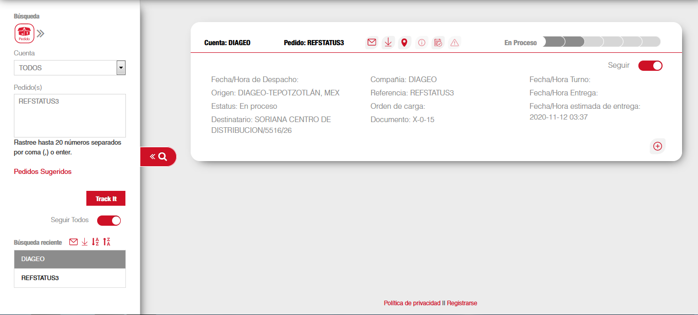 • Los últimos 3 segmentos representan el estatus de viaje de un pedido.