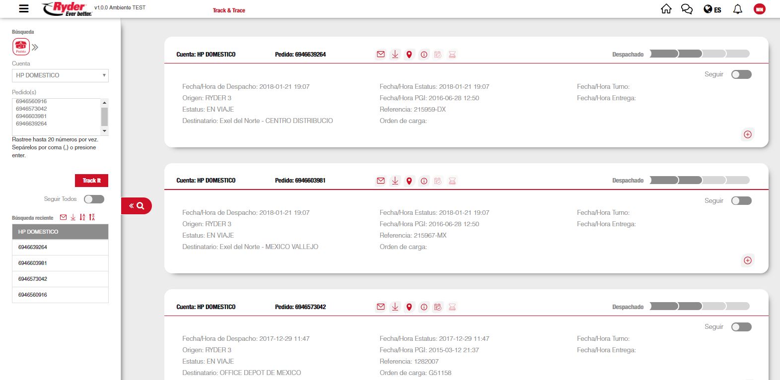 El usuario al encontrarse posicionado sobre los resultados de búsqueda de pedidos deberá dar clic sobre el icono de "Email" en la parte superior de cada uno de los resultados.