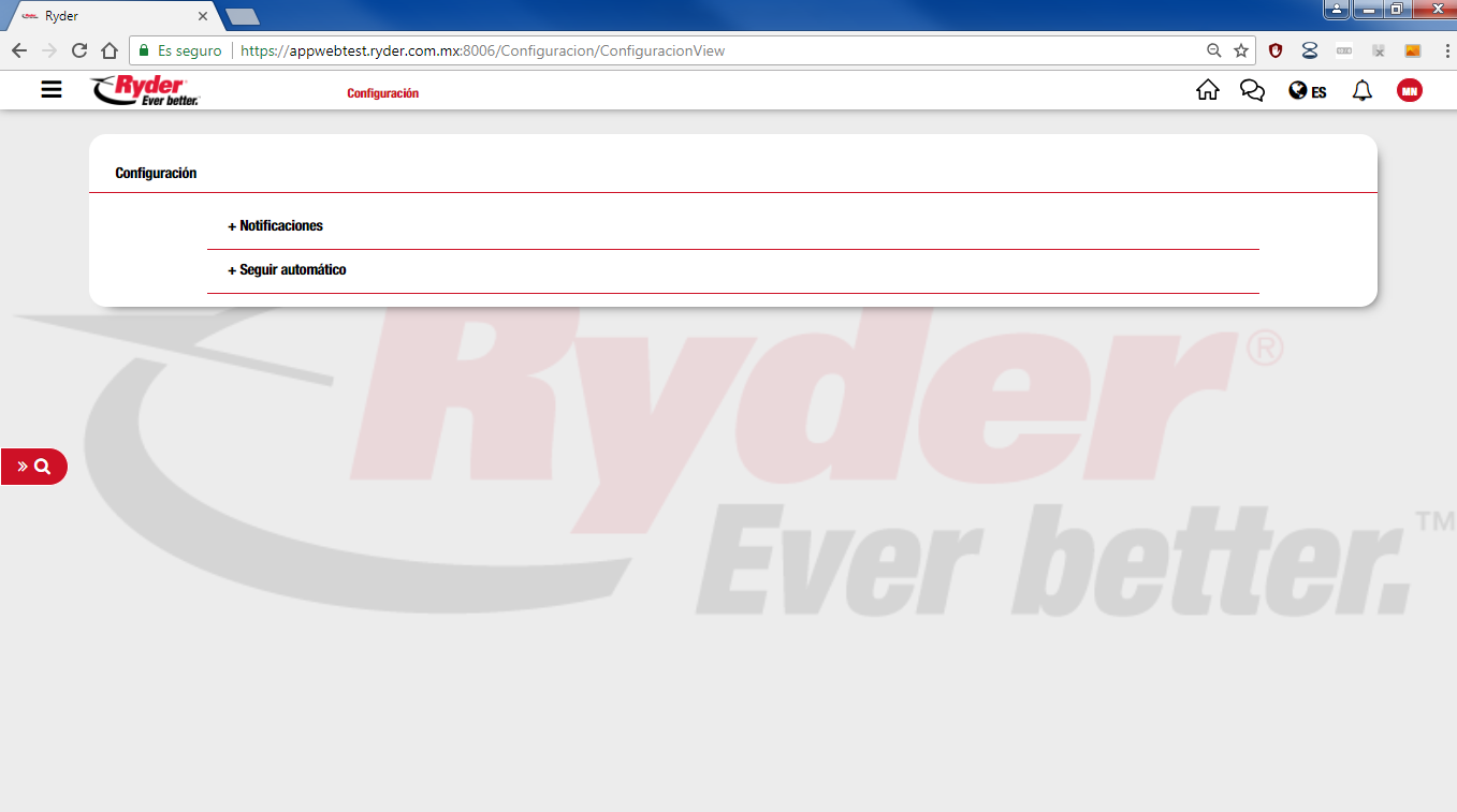 Una vez que el usuario inicia sesión independientemente de la pantalla en la que se encuentre deberá dar clic sobre el icono "Menú" ubicado en la parte superior izquierda, se desplegará la siguiente lista de opciones: Inicio, reportes, seguidos, configuración y tablero BI. El usuario deberá dar clic sobre la opción "Configuración".