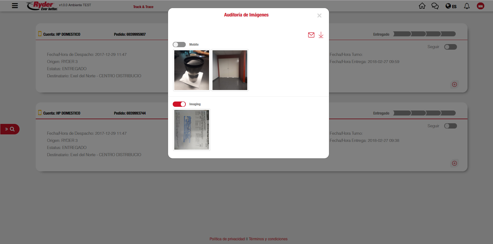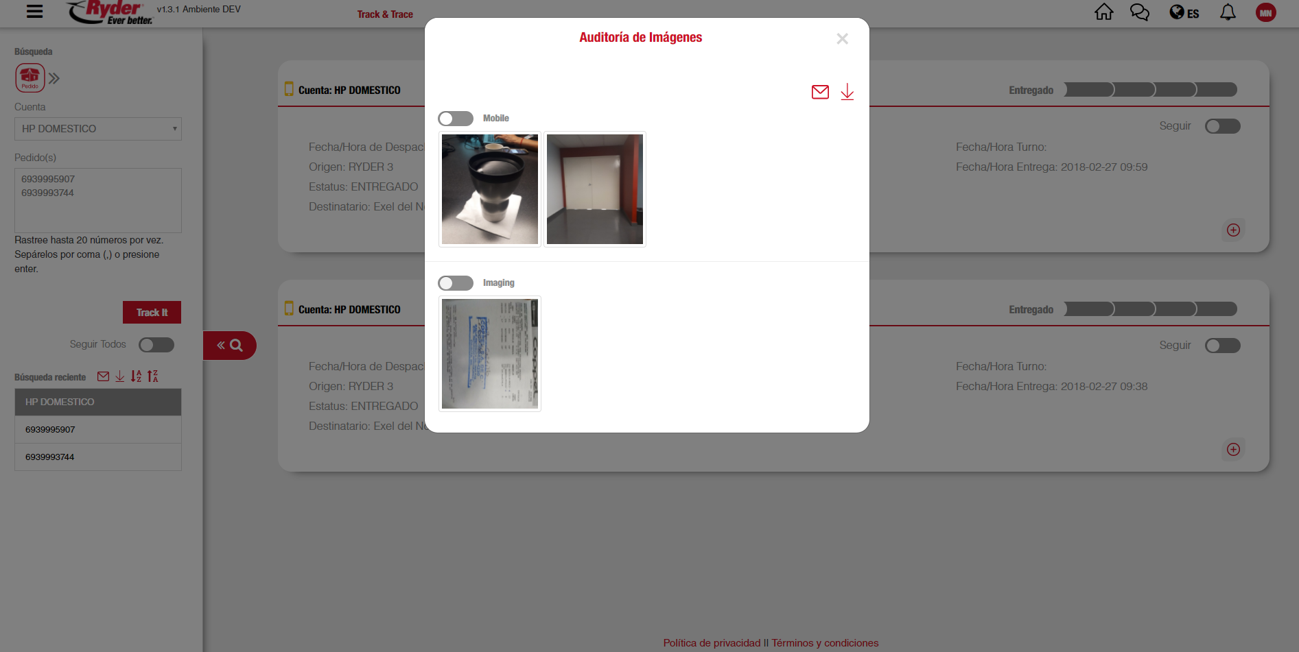 Auditar imágenes de prueba de entrega (POD) desde pedido.