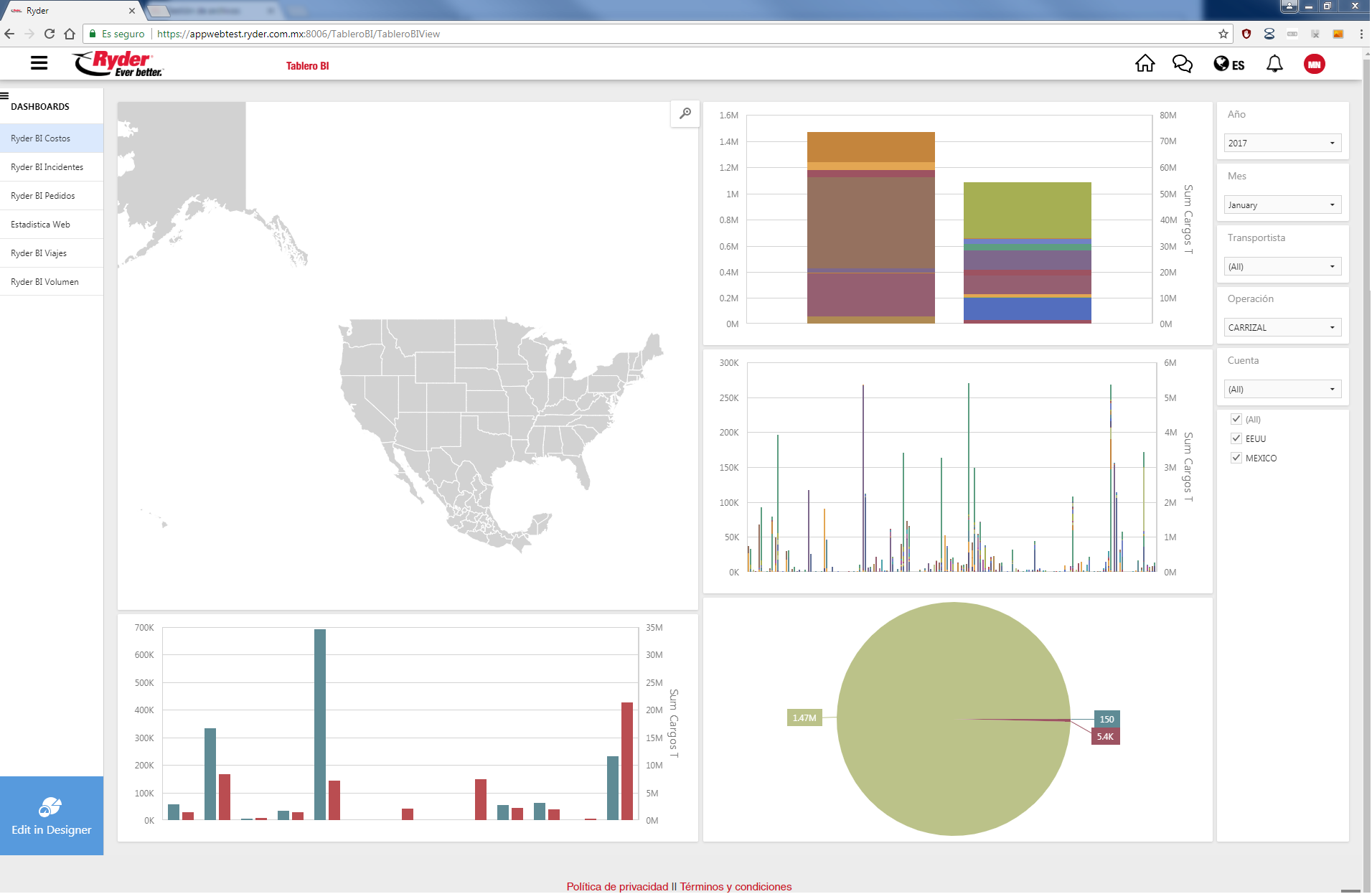 Si el usuario si cuenta con los permisos, se mostrará el tablero con los indicadores de entregas, seguimiento y actividad.