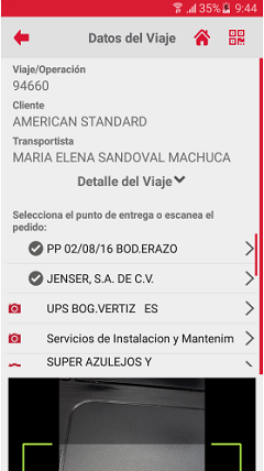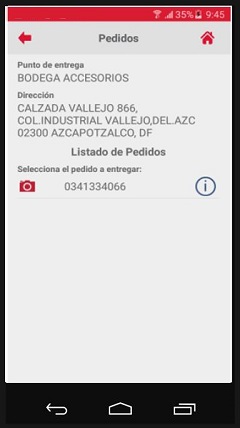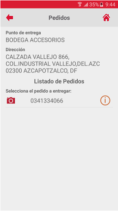 - Una vez posicionado el chofer o transportista en la pantalla Datos del Viaje, deberá presionar el punto de entrega de su interés y ésta acción mostrará la pantalla Pedidos: