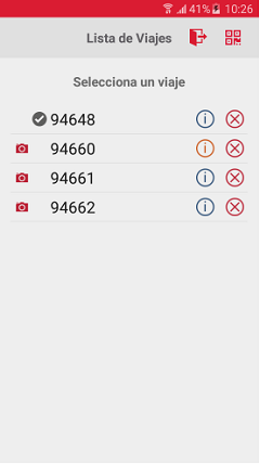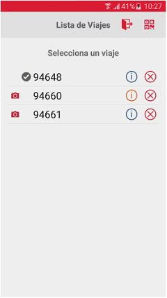 El chofer o transportista está posicionado en la pantalla Listado de Viajes: