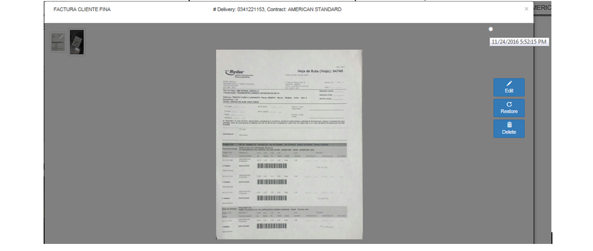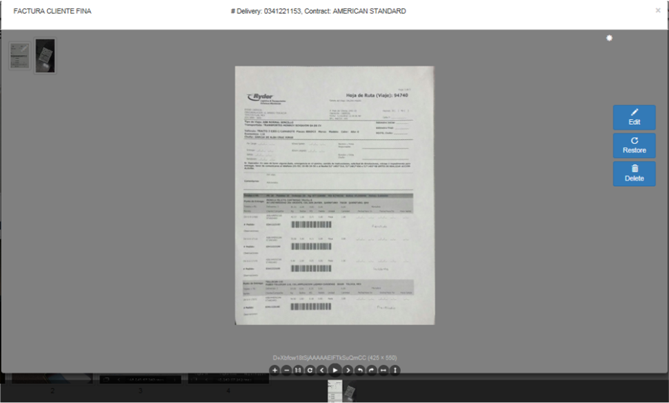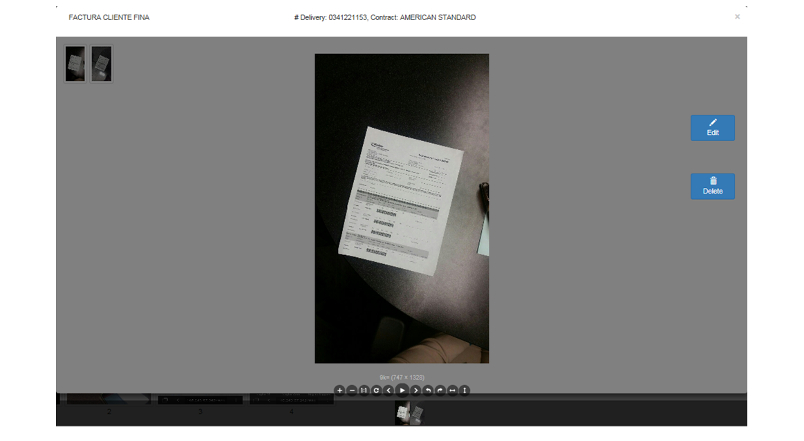 El usuario podrá utilizar a criterio los diferentes controladores (visualizados en la parte inferior de la imagen) y aplicarlos a dicha imagen. Además si el usuario cuenta con un rol de Auditor podrá editar, agregar, reemplazar, eliminar una imagen a criterio o restaurar únicamente una imagen editada. El usuario podrá identificar las imágenes que han sido editadas mediante el identificador * en color blanco que se visualizará en la parte superior derecha de una imagen editada.