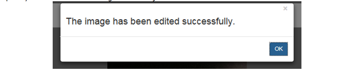 Una vez que el usuario visualiza la imagen editada a su gusto, deberá dar clic en el botón [Save] o [Guardar] (el nombre del botón depende del idioma) y esta acción mostrará el siguiente mensaje: