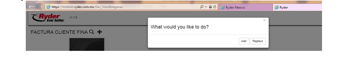 Una vez posicionado en la ventana Visor de Imágenes, el usuario deberá identificar el tipo de documento al cuál desea agregar una imagen y posteriormente deberá dar clic en el icono +, esta acción mostrará el siguiente mensaje: