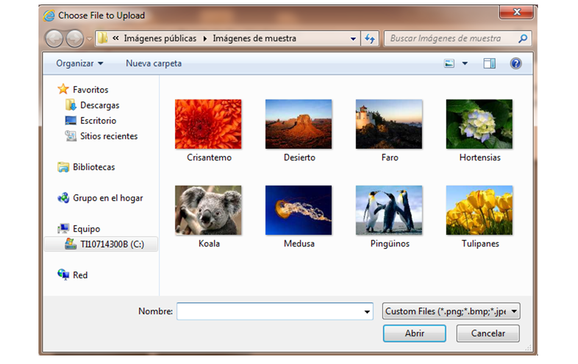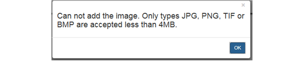 O el usuario deberá seleccionar la imagen de interés cuyo formato debe ser JPG o PNG o TIF o BMP y menores a 4MB, posteriormente deberá dar clic en el botón [Abrir] y se mostrará el siguiente mensaje: